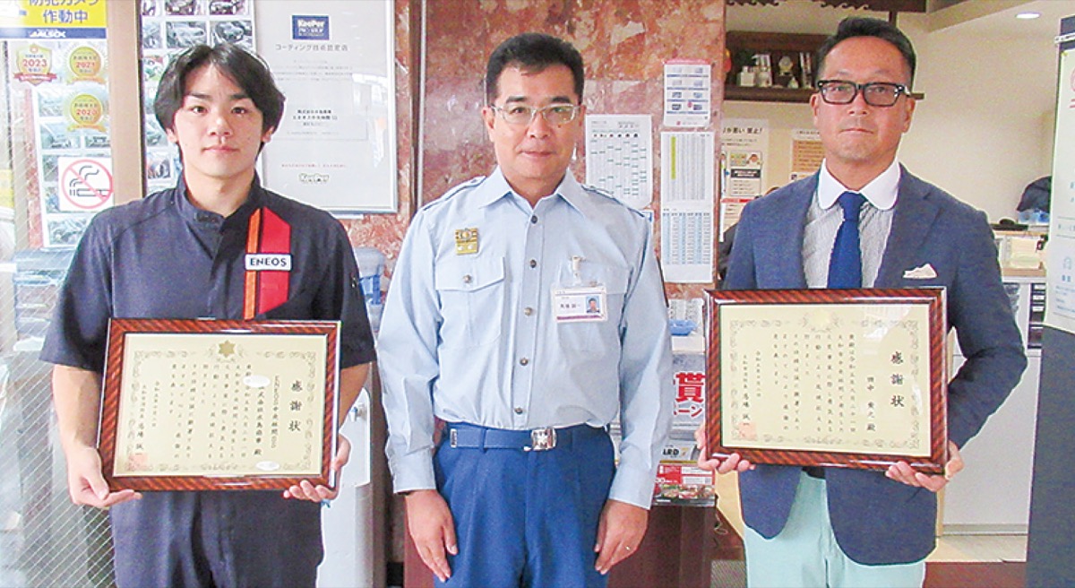 大和市消防本部(馬場誠一消防長)は2日、消火活動に協力したとして、座間市の会社員・田中貴之さん(56)と、ガソリンスタンド「ENEOS中央林間」を運営する「株式会社水島商事」に感謝状を贈呈した。