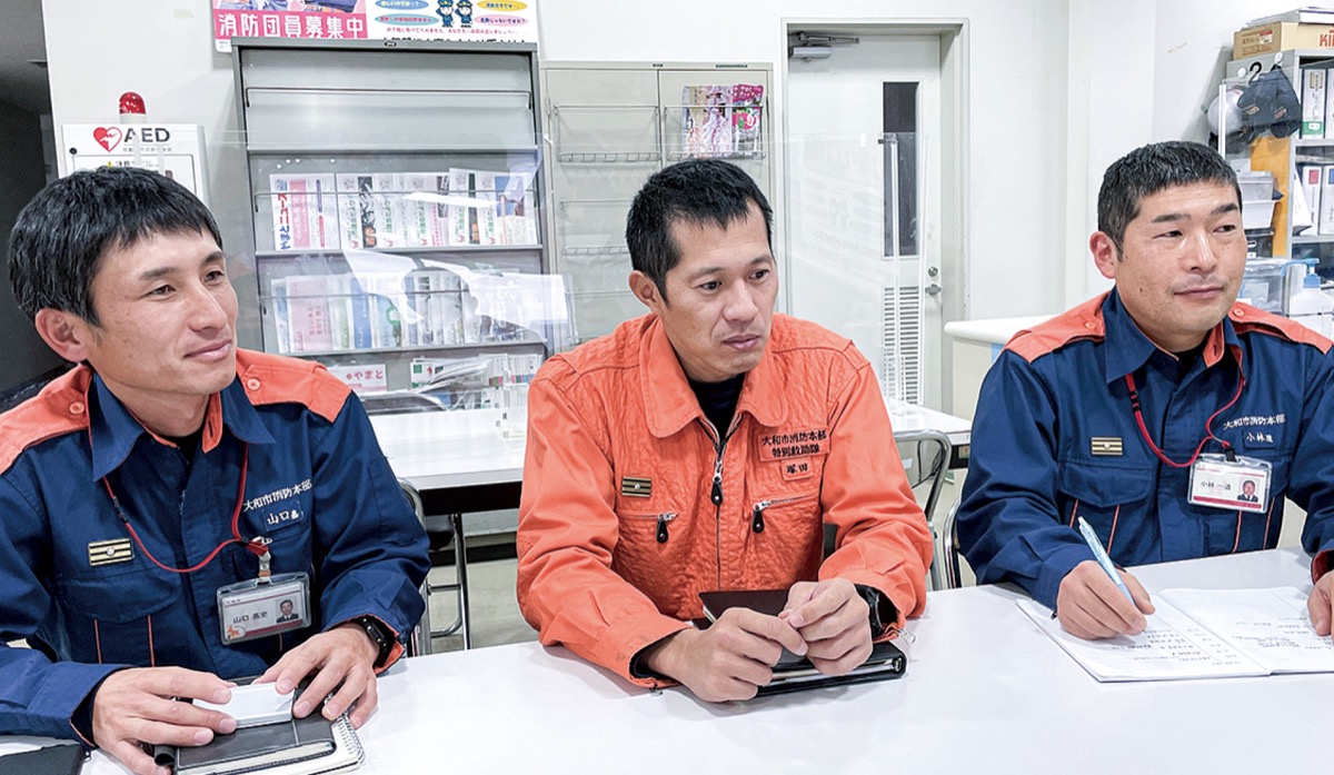 3人は東日本大震災の時も派遣隊として被災地で活動した。これまでの救援活動の経験から「日ごろから隣近所の人たちと交流し、家族構成などお互いのことを理解し合えれば、緊急時の捜索活動もより有効に行える。普段からの人間関係も大切にしてほしい」と塚田さん。山口さんは「携帯トイレを常備していても、いざという時に抵抗感から使用できないという方もいる。携帯トイレを使う訓練も必要だと感じた」と振り返る。小林さんは「帰省中の人も多い中の地震だった。揺れた時に命を守るため、家具の固定や耐震化などを今一度考えることも大切では」と話していた。