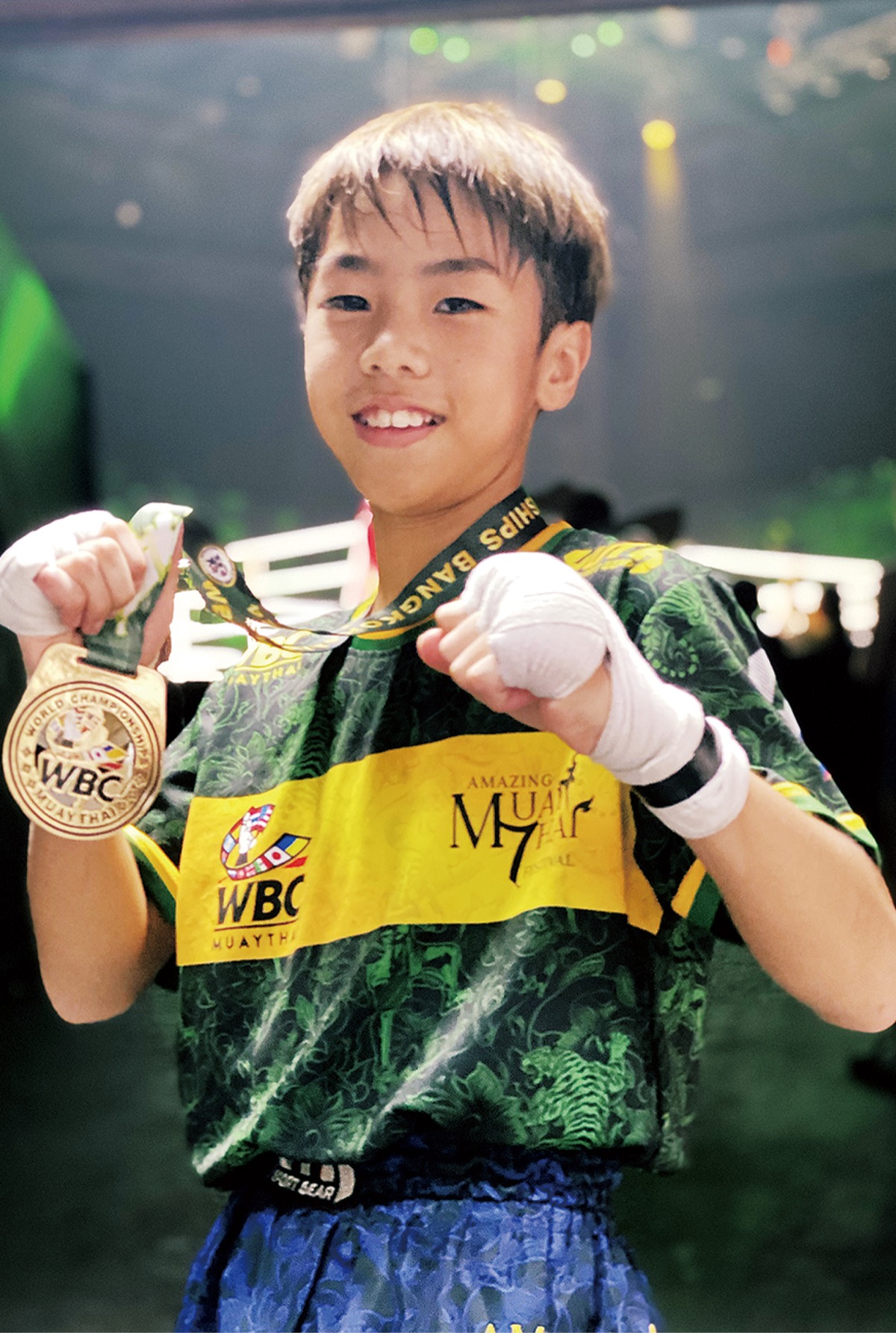 ムエタイ発祥の地・タイ・バンコクのルンピニー・スタジアムで2月1日〜5日にかけて「WBCムエタイジュニア・リーグ世界大会」が開催され、文ヶ岡小4年の小池隼斗君(10)が31kg級で優勝を果たし、世界一の称号を手にした。