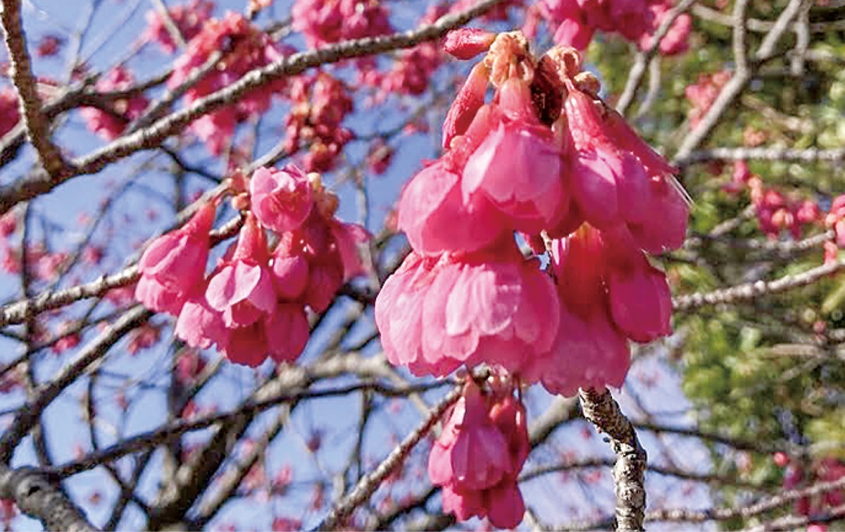 大和ゆとりの森(福田)では3月上旬から、寒緋桜(カンヒザクラ)が見頃を迎えている。