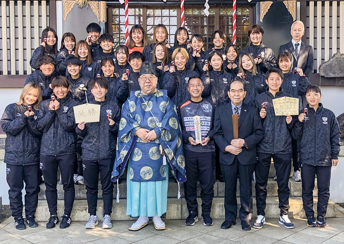 大和市をホームタウンに活動する女子サッカーチーム「大和シルフィード」(沖山雅彦監督)の選手・関係者が3月3日、なでしこリーグ開幕に先がけ、下鶴間にある公所浅間神社(樋田誠宮司)で必勝祈願を行った。
