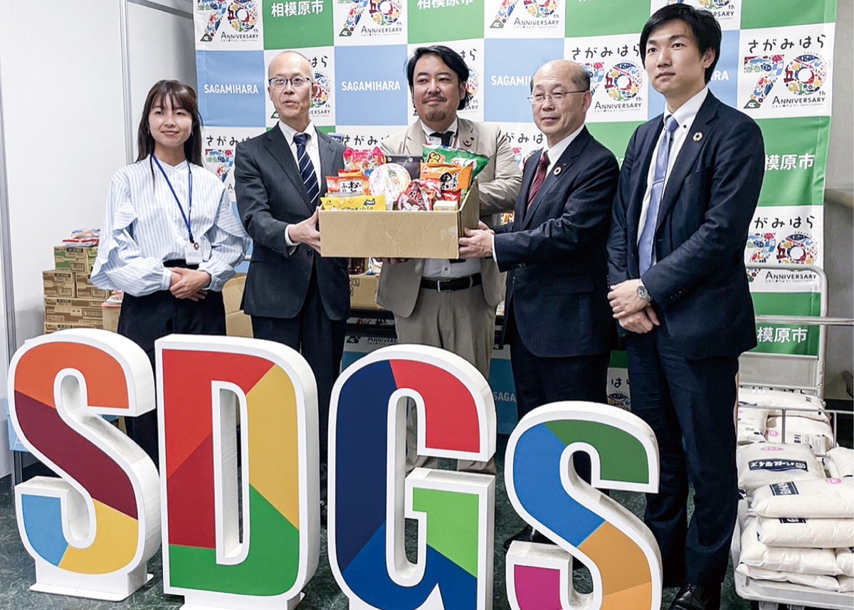 同社は9日、未使用の食品を募りそれを必要とする人たちに届ける「フードドライブ活動」を横浜スタジアムで実施。そこで寄せられた米150kgや、レトルト食品など計66箱を今回、同社が給食事業で関わりのある相模原市へ贈った。