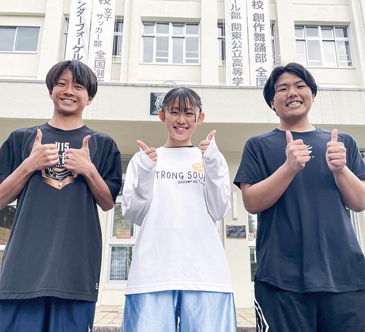 今回取材に応じてくれたのは、女子バスケットボール部の部長を務める前田真輝さん(2年)、部長として男子バスケットボール部をまとめる池田陸斗さん(2年)、同部に所属する畑中俊輔さん(1年)。3人とも大和市外から同校に通う。