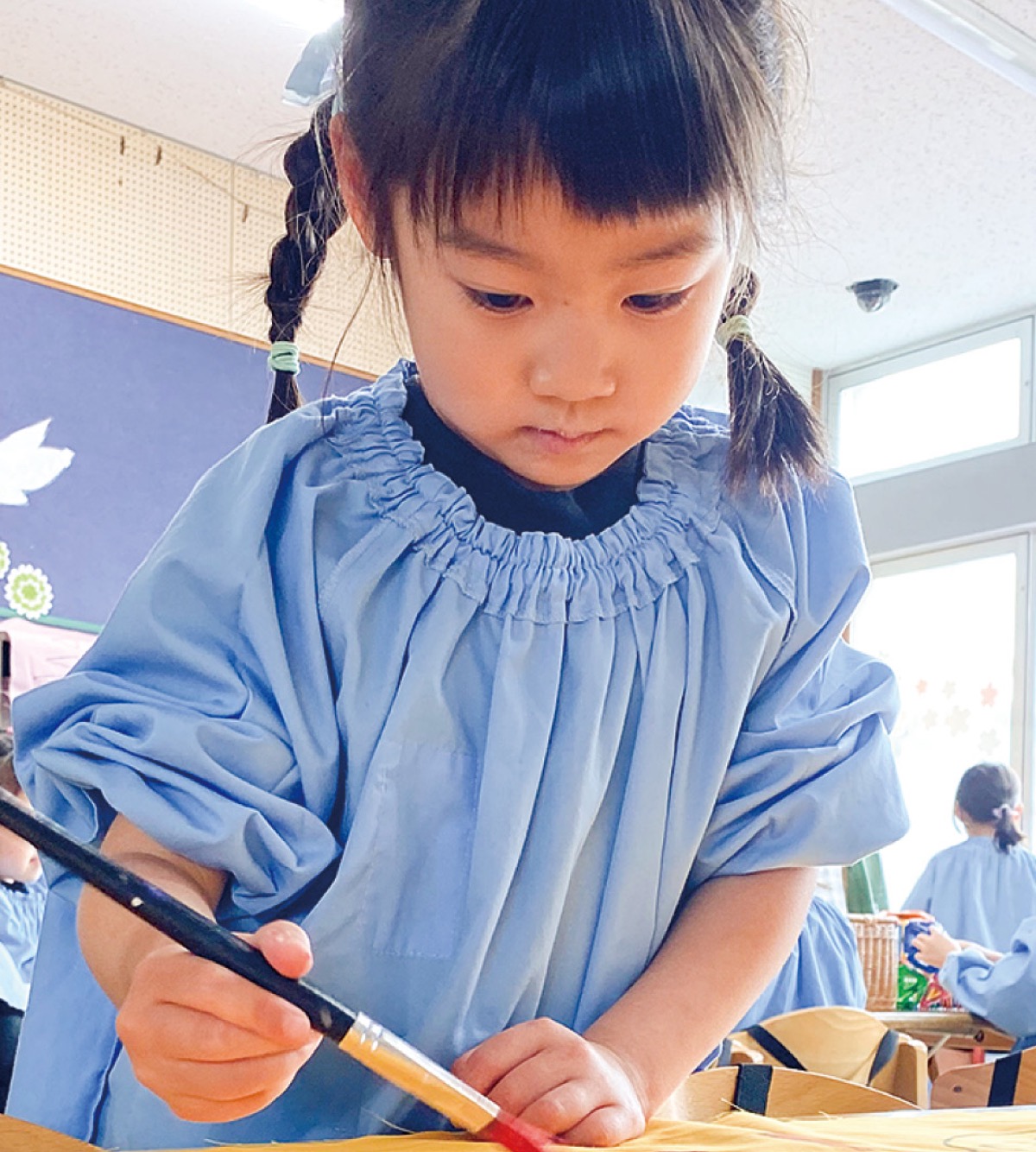 園児たちが手を動かしてものづくりを行うことも大切にしている同園。園での生活を通して目に映るさまざまなことに関心を持ち、創造性を育む時期だからこそ、実際に手を動かしながら紙を切り、絵を描いたりして学びを深めている。