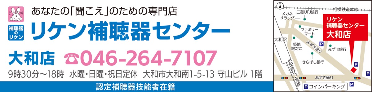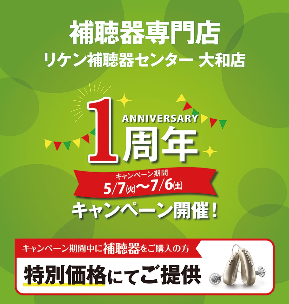 『リケン補聴器センター 大和店』(大和駅から徒歩2分)がオープン1周年キャンペーンを7月6日(土)まで開催。期間中、補聴器を特別価格で販売するほか、相談を行った人へのプレゼントを進呈(数に限りあり)。