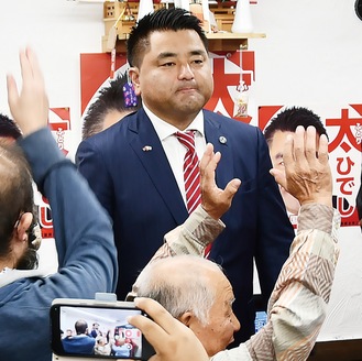 投票が締め切られた午後8時ごろ、太事務所(大和東)には支持者ら10人ほどがいた。選挙速報サイトで太氏の当選確実が告げられると少しずつ歓声があがり始めた。