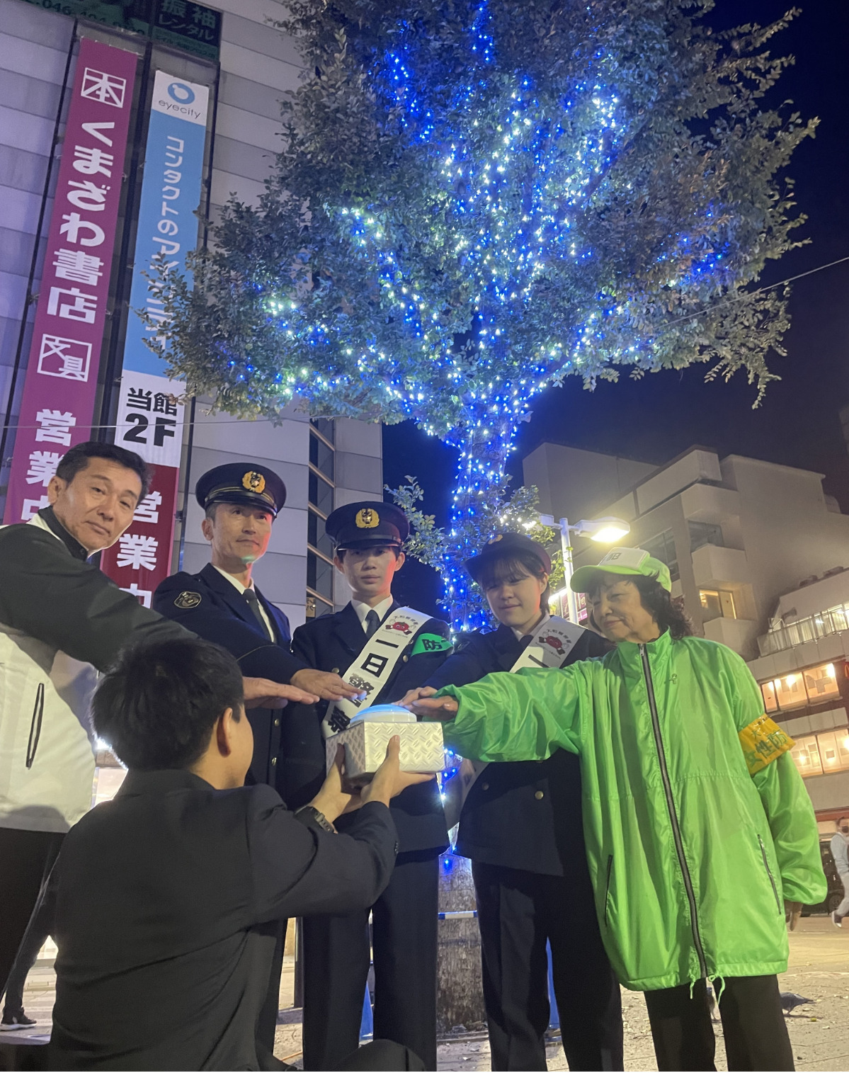 式の冒頭であいさつに立った大和署の森田署長は「このイルミネーションは大和を安全・安心のまちにしようという純粋な使命感の輝き」と市電設協会の取り組みに謝意を述べた。