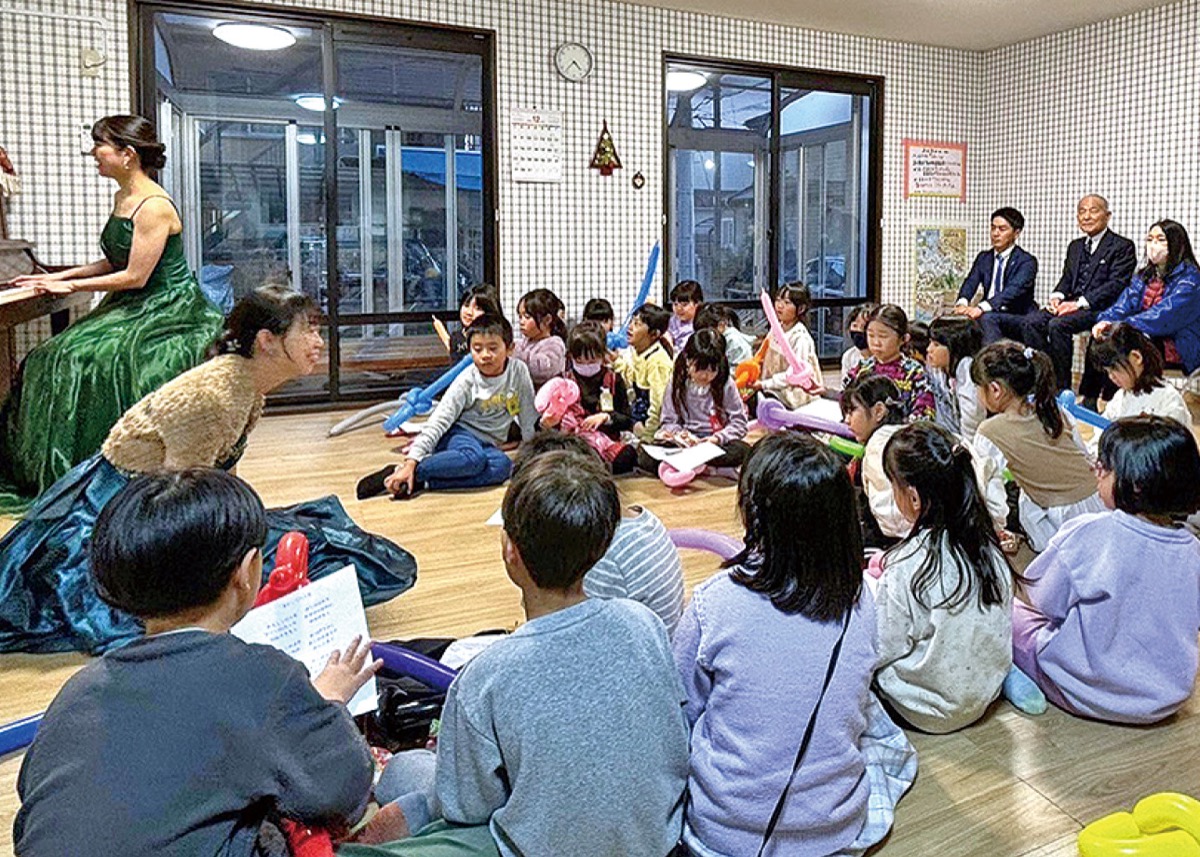 NPO法人地域家族しんちゃんハウス(館合みち子理事長)で12月9日、クリスマス会が開かれた。同所に通う子どもたち約60人が、プロの音楽家による演奏に耳を傾けていた。