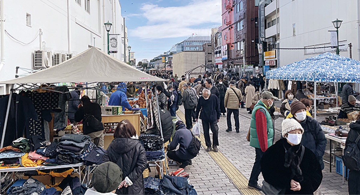 新年最初となる「神奈川やまと古民具骨董市」が18日、大和駅前の東西プロムナードで開催され多くの人でにぎわった。
