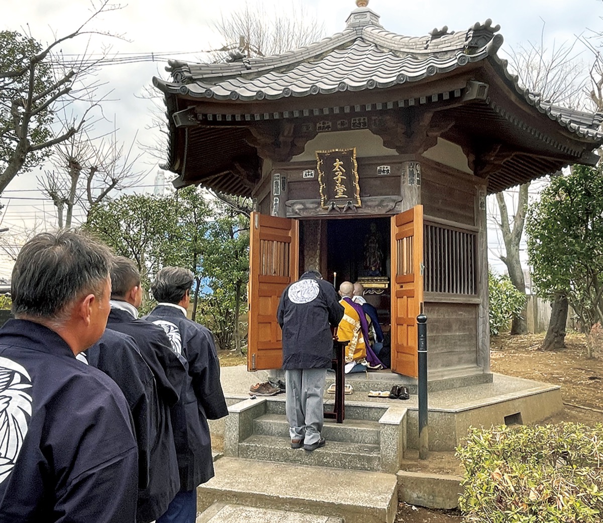 太子堂は相模太子講が今から30年前に建て、中には聖徳太子立像が安置されている。法要の時だけ太子堂の扉は開かれ、この日は聖徳太子立像がお目見え。参列した講員や関係者らは焼香をあげ、手を合わせた。