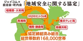 こうした社会問題を受け、ケーブルテレビ事業を手掛ける(株)ジェイコム湘南・神奈川(京克樹代表取締役社長)は、神奈川県のエリア内全37警察署と「地域安全に関する協定」を締結。さらに、自治会・町内会とも締結を進める。