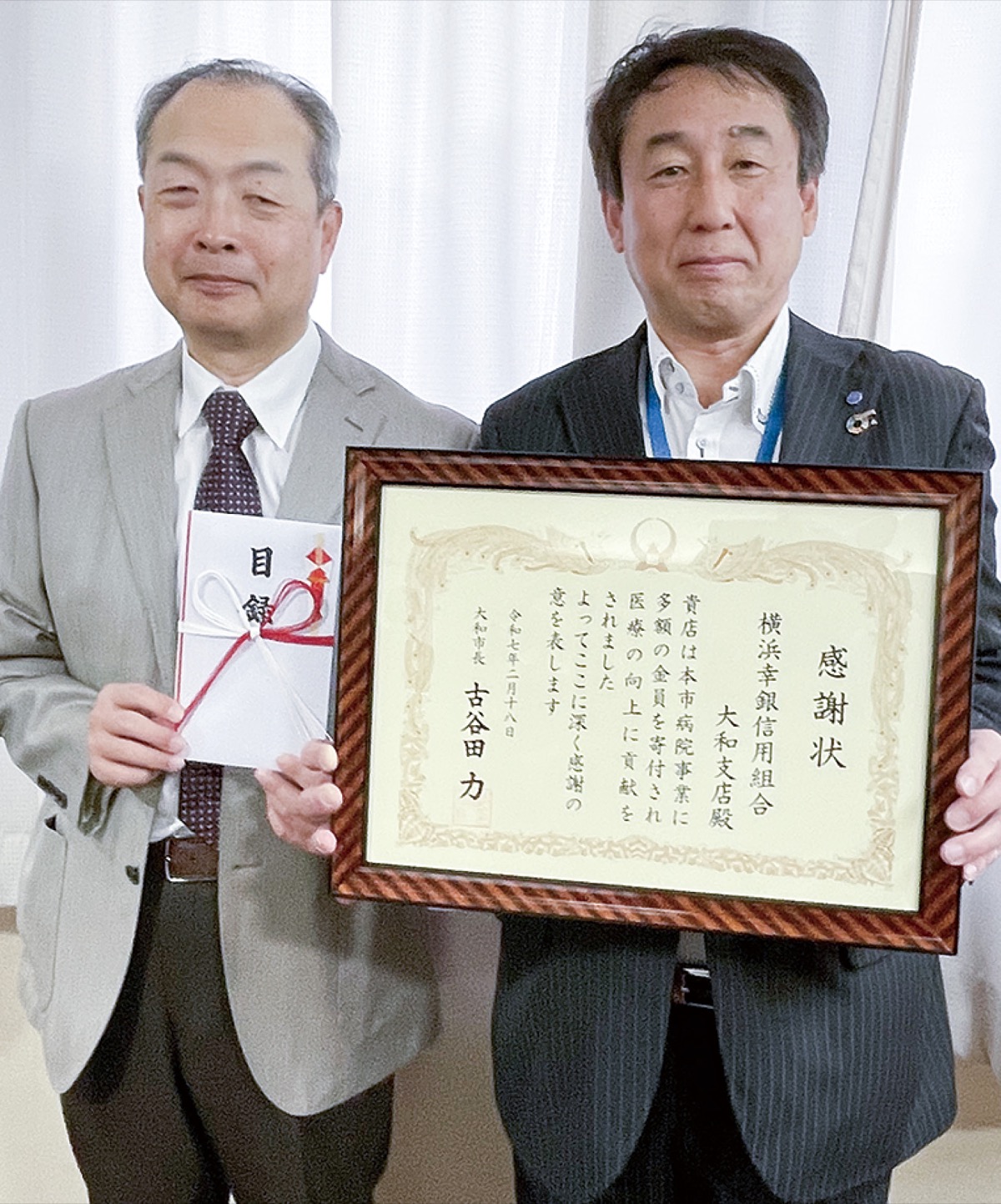 横浜幸銀信用組合がこのほど、大和市立病院(石川雅彦病院長)に30万円を寄付した。これを受け18日、同院で寄贈式が行われた。