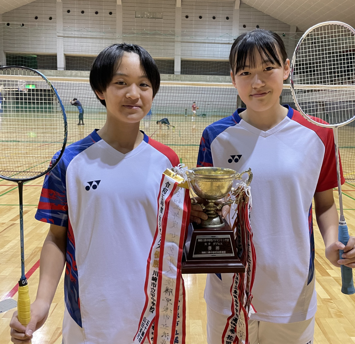 「県中学校バドミントン大会(新人戦)」(主催/県中学校体育連盟・県バドミントン協会)がこのほど、南足柄市体育センターで開催され、土橋優実和(引地台中1年)・江川桃加(南林間中1年)ペアが「女子ダブルス」の部で優勝した。二人は、3月21日に広島県で開幕する「全日本中学生バドミントン選手権大会」(主催/日本バドミントン協会)に県代表として出場する。