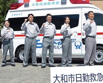 大和市消防本部(中丸剛仁消防長)は4月1日、高まる救急需要に対応するため「日勤救急隊」を創設した。4日には同本部内消防防災訓練センター前で発足式を開いた。