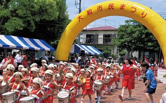 モミヤマ幼稚園(福田5の17の2)の年長組の園児約100人が、大和市民まつり内で行われたパレードに参加した=写真。