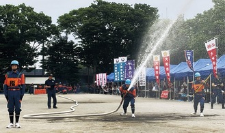 第18回「市消防操法大会」(主催/大和市)が8日、引地台公園令和広場で開かれた。各分団から1チームが選抜され、12チームが出場した。