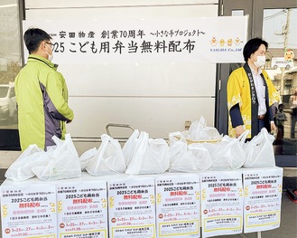 同社では今年4月、海老名市にある「クッキングセンター湘南工場」で地域の子どもたちに弁当を無料で配布。4日間で計200食が家庭の食卓に渡った。県のPRキャラクター「かながわキンタロウ」も駆け付けるなど、行政との連携もあり、会場では子どもたちの笑顔も見られた。