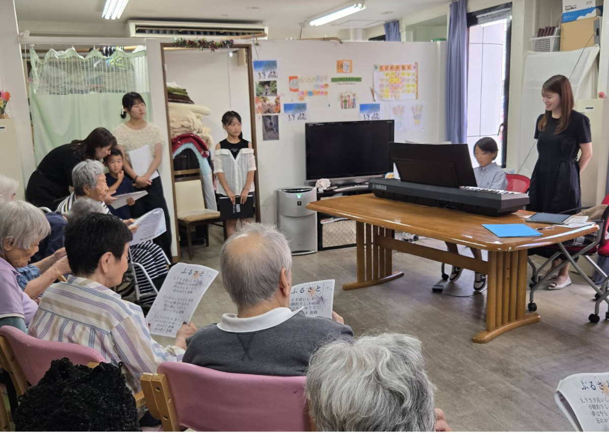 ファミリー介護サービス大和の関屋美子管理者は「施設利用者の人たちも楽しみにしており、励みにもなっている。一緒に歌を歌ったりすることで機能向上にもつながっていると思う。ぜひ今後も開催してほしい」と感謝を述べた。