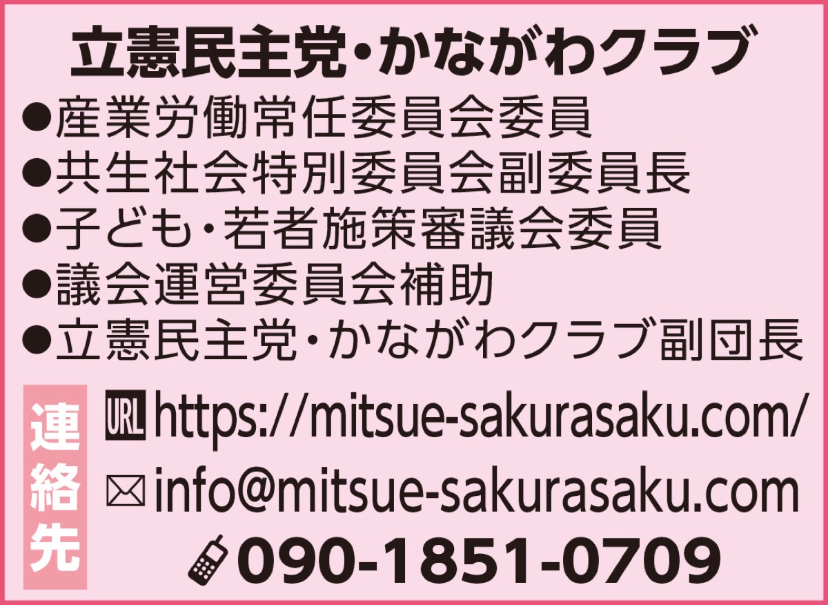 「利他の精神を学び、幸せに生きるための知性を磨く」を理念とする「かながわ福祉大学校」が、今年7月に開校しました。野内みつえは、公共政策課程の第一期生として受講。超高齢社会が進展する神奈川県において、さまざまな角度から県民が安心して暮らせるよう政策立案を目指します。