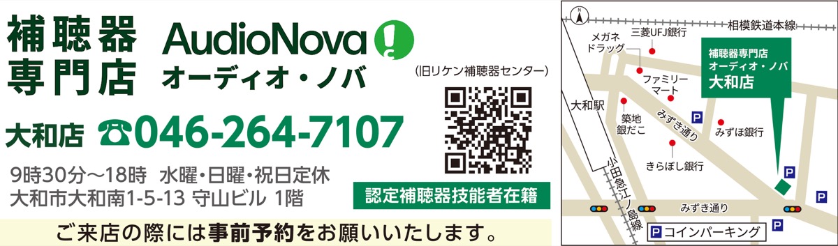 「最適な補聴器が見つかった」―。『補聴器専門店オーディオ・ノバ 大和店』の「補聴器体験会」が利用者から好評だ。同店は12月27日(土)まで期間延長を決めた。