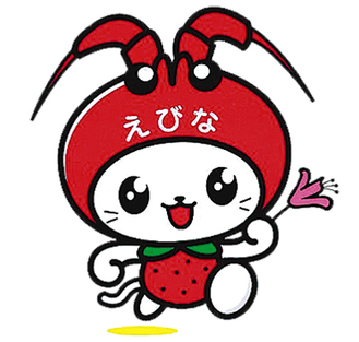 明るく元気で海老名の子どもたちが大好きで誰とでもすぐに仲良くできる――という設定の「 えび〜にゃ」は「エビ」と「猫」を融合した、いわゆる「ゆるキャラ」。市の花「サツキ」を手にし、体全体が市の特産品である「いちご」を模している。