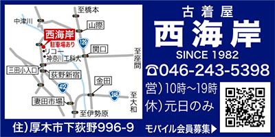 九州地区を中心に全国20店舗を展開し、創業29年の実績を誇る古着屋、『西海岸』の厚木店が3月4日、厚木市下荻野に神奈川県内第1号店としてグランドオープンした。