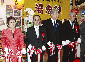 市内中央の飲食施設「喰の道場」(三浦観二館長)で24日、北海道登別市との都市間交流の一環である「喰の連携事業」により出店することになった、登別市のラーメン店「湯鬼神」のオープニングセレモニーが行われた。