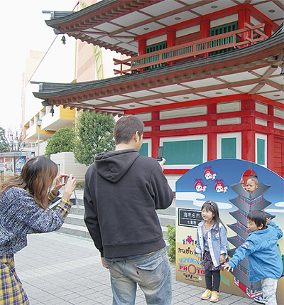 県や市町村、民間事業者が実行委員会を組織し企画した観光啓発キャンペーン「スマイルボードPHOTOラリー」の一環で、海老名中央公園内の七重の塔前に「顔はめ看板」が設置された。