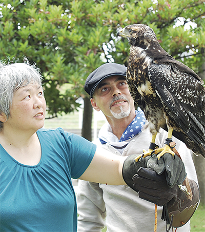 「猛禽類のくちばしは人間の爪と同じように伸びます。野生のものは石などで削りますが、この子たちは私が切ります」と解説するなど質疑応答も行われた。エドアルドさんは「鷹匠を広めるとともに鷹たちとの触れ合う機会をもっと作りたい。猛禽類は優しいです」と話していた。今後の日程など問合せは同法人【電話】046・234・1448へ。