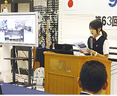 日本青年会議所の少年少女国連大使として7月にニューヨークの国連本部などを訪問した下今泉在住の中学生・橋場優香さん(13)が9月10日、ザ・ウイングス海老名で大使活動の報告会を行った。