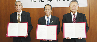 海老名市と市自治会連絡協議会(新野弘昭会長)はこのほど、公益社団法人神奈川県宅地建物取引業協会県央東支部(深澤勝利支部長)と公益社団法人全日本不動産協会県央支部(武藤鶴雄支部長)との間で自治会加入促進に関する協定を交わした。