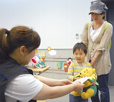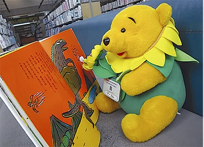 職員は17体のぬいぐるみが持ち主の子どもたちの興味に沿った絵本を館内で楽しむ姿を撮影。写真は館内で過ごした様子を記したメッセージカードと共に翌日、迎えに来た子どもたちに手渡された。杉久保南に暮らす奥谷樹くん(3)はプーさんのぬいぐるみを受け取るとギュっと抱きしめ、職員から「怪獣が出てくる絵本を読んでいたよ」と前夜の様子を聞き、母親の婦貴子さんから「きょう寝るとき、この本読もうか」と話しかけられると「うん」と笑顔を浮かべ、ぬいぐるみと共に帰宅した。ほかの子どもたちも写真に収められたファンタジーの世界に見入り、その多くがぬいぐるみが読んだ絵本を借りて帰ったという。