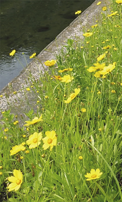 この花は北アメリカ原産で1985年ごろに観賞用として輸入された帰化植物。5月から7月が開花時期でいまが最盛期だ。