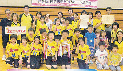 社家小学校の体育館を拠点に活動する小学生ドッジボールチーム「フェニックス」(内山勇代表)=人物風土記=がこのほど、伊勢原市内で行われた「富士シティオ&スリーエフカップ第20回神奈川県ドッジボール選手権」の男子単独・混合の部で優勝し、11月30日に開催される関東大会への出場権を手にした。同チームが関東大会へ進むのは12年ぶり。