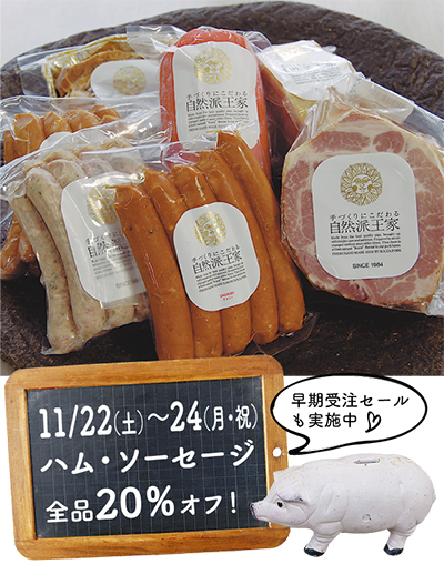 22日(土)・23日(日)・24日(月)の3日間はハム・ソーセージ全品20%オフとなる特別セールも行われる。ご当地の美味しいお肉は世代を問わず喜ばれるはず。29日には生肉が10%オフも。