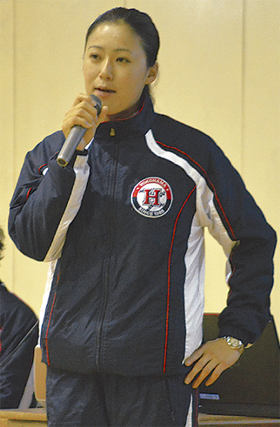 海老名中学校(谷川治校長)で2月2日、日本女子ソフトボールリーグ1部に所属する日立ソフトボール部の鈴木由香監督(海老名市本郷出身)とチームの主将で北京オリンピックにも出場した山田恵里選手、同リーグで新人賞を受賞した小園美希選手を招き、公開講座が行われた。