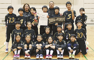 中でも大谷小・上星小を拠点に活動する「ゼブラ★パワーズ」(小林和博監督)は2009年の創立以来、最高位となる県3位の成績だった。同チームは、4チームごとに分かれた予選リーグを苦戦を強いられながらも2位で突破し、決勝トーナメントに進出。市内のライバルチーム「中新田ファイヤーズ」との対戦となった準々決勝は、攻めの起点となるアタッカーが狙われ、劣勢のゲーム展開だったが、主将でエースアタッカーの小林元さん(大谷小6年)の活躍もあり逆転で勝利をものにした。