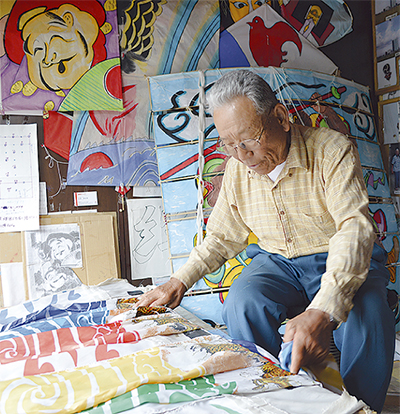 70歳のとき、相模川の河川敷で凧揚げをしている人たちを見かけ、興味を持った山崎さんはすぐに声を掛け、先輩に教えてもらいながら凧作りを始めた。「大勢でやっていたら競争心が出てきた」と、より高く、より空中で「ぴたっ」と止まる凧を追い求め、試行錯誤を重ねた。