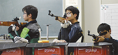 エアライフルには石井文也さん(3年)、ビームライフルには野崎達也さん(3年)、遠藤嘉康さん(3年)、松永恒志さん(2年)、石井さん、神谷沙絵さん(3年)が出場する。