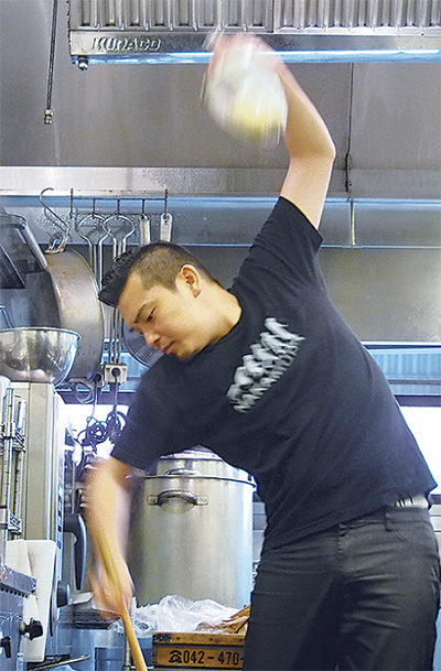 「味」の評判と共に、その名を轟かせた「技」といえば、腕を大きく振り上げ、湯切りする”天空落とし”。「あれはパフォーマンスではなくて、ただ早く湯きりしたかっただけなんですけどね」と笑って答える。
