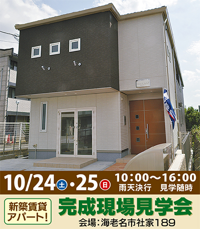 積水ハウス(株)は10月24日(土)と25日(日)、テナント付き賃貸アパートの完成現場見学会を社家で開催する。
