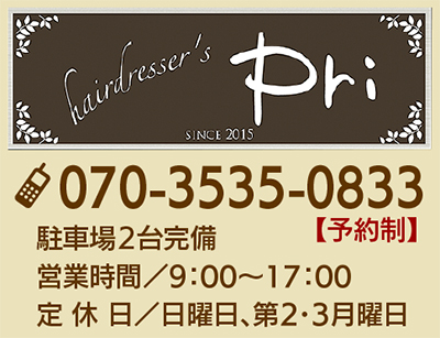 社家駅徒歩1分に佇む最新アパートの1階は、11月中旬オープン予定のヘアーサロン「Pri(プリ)」!白と茶を基調としたハイセンスな店内には最新のフラットシャンプー台などを完備し、心地よい空間が広がっている。「いつ訪れても、くつろげるプライベートサロンとして、一人ひとりに合ったヘアスタイル、サービスを心掛けています」。
