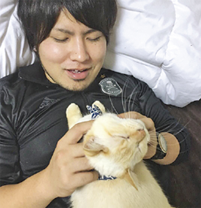 日本人らしからぬ濃い顔で一見すると強面…しかし、その表情とは裏腹に「愛猫家」という一面もある。最近では、猫の施術も出来るようになったのだとか。