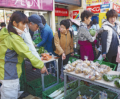 市内杉久保北の農業者研修教育施設「県立かながわ農業アカデミー」が11月9日、イオン海老名店の前で野菜の直売を行った。