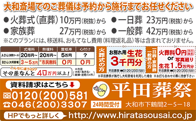 どこの斎場で葬儀をしても必ず火葬は大和斎場。大和斎場での葬儀費用を知りたい方は簡易生前見積もり資料があるので問合せを」