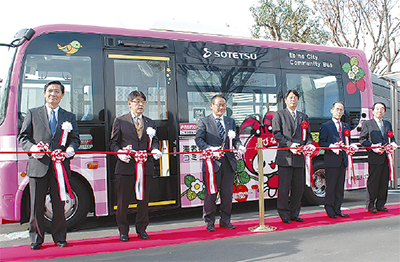 市内の一般道からも入場できる海老名サービスエリア(SA)下り線に、このほどコミュニティバスの停留所が新設され、記念セレモニーが行われた=写真。