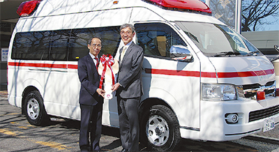 これは消防車両の更新に伴う廃車車両を有効活用したもの。寄贈先の選定では市内の二次医療機関に募集を行い、申し出のあった同院に決定した。
