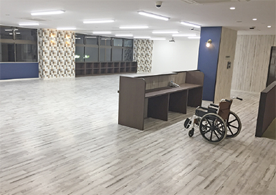 この施設には、理学療法士・作業療法士・言語聴覚士・音楽療法士ら同院の専門スタッフが集結。最新のリハビリ機器を用い、利用者さん一人ひとりの症状に向き合う。他では珍しい音楽を使ったセラピーやアロママッサージなども取り入れていくという。その他、炭酸泉のある大型浴槽完備、管理栄養士が監修した食事の提供も。クリニック併設(医師常駐)なのも安心できる。
