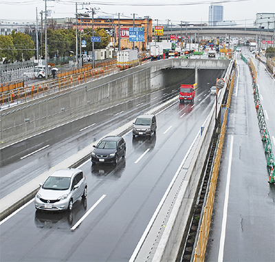 交通の利便性と安全性を考え、南北にのびる国道129号線が県道22号線の下を通る「アンダーパス」方式が採用された同工事。開通により、信号で停まることなく交差点を通過できるようになり、渋滞緩和が期待される。同区間は片側2車線で距離は500m。歩行者や自転車の往来はできず、車の最高時速は60Kmに設定された。