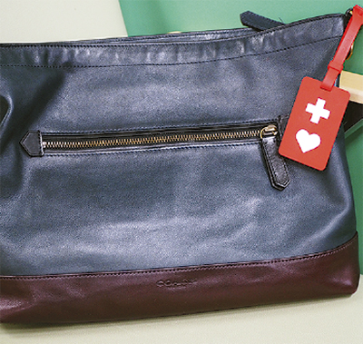 マークは免許証ほどの大きさで、赤い樹脂製の素材に白い十字とハートが描かれている。外出時に鞄などにつけることで、援助の必要性を「見える化」できる。